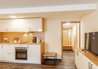 Im Vergleich zu einem Hotel die deutlich günstigere Alternative. Unser stylischen und modernen Apartments verfügen alle über eine hochwertiger Ausstattung. Durch die Größe von rund 35qm genießen sie auch viel individuellen Freiraum. Die Apartments verfügen über einen schönen, großen Wohnbereich mit voll ausgestatteter Küchenzeile. Weiterhin haben sie ein separates helles, schönes Badezimmer und ein Schlafzimmer.